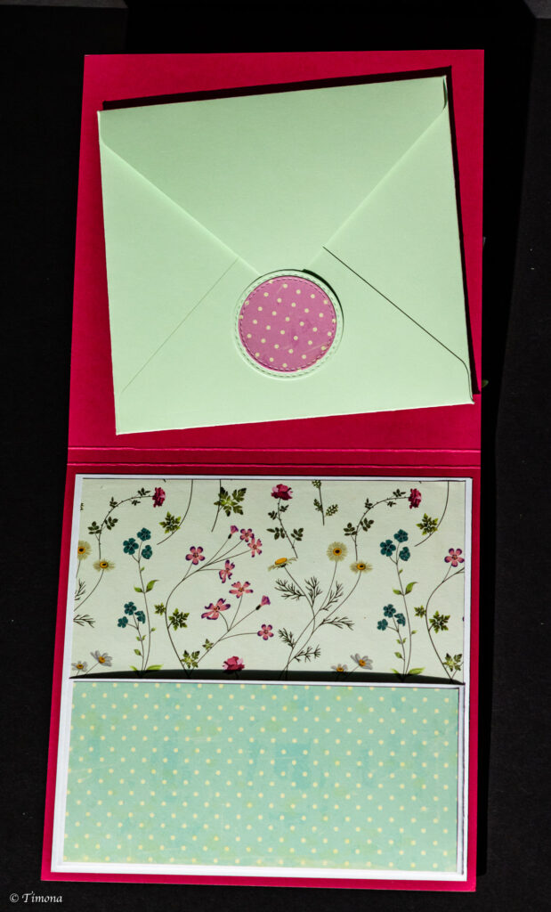 Hrubšie zalomenie preto, aby som do jej vnútra vedela zakomonovať kapsičku, do ktorej bude vložená obálka na finančný darček a tiež pevná kartička s blahoprajným vinšom.