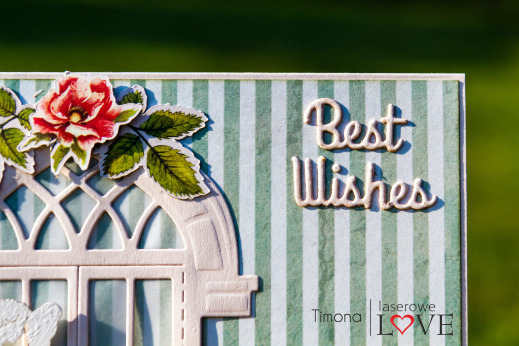 Nápis „Best Wishes“ je vyzeraný z papiera pomocou vyrezácacej šablóny na Big Shote.