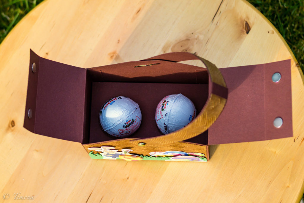 Chcete niekomu dať „kinderko“ a malo by byť aj pekne zabalené? Pre dve vajíčka som vyhotovila takúto krabičku(košíček), ktorú som vyzdobila aktuálnym veľkonočným motívom. Možno budú pre kúpača :-).