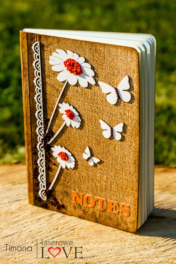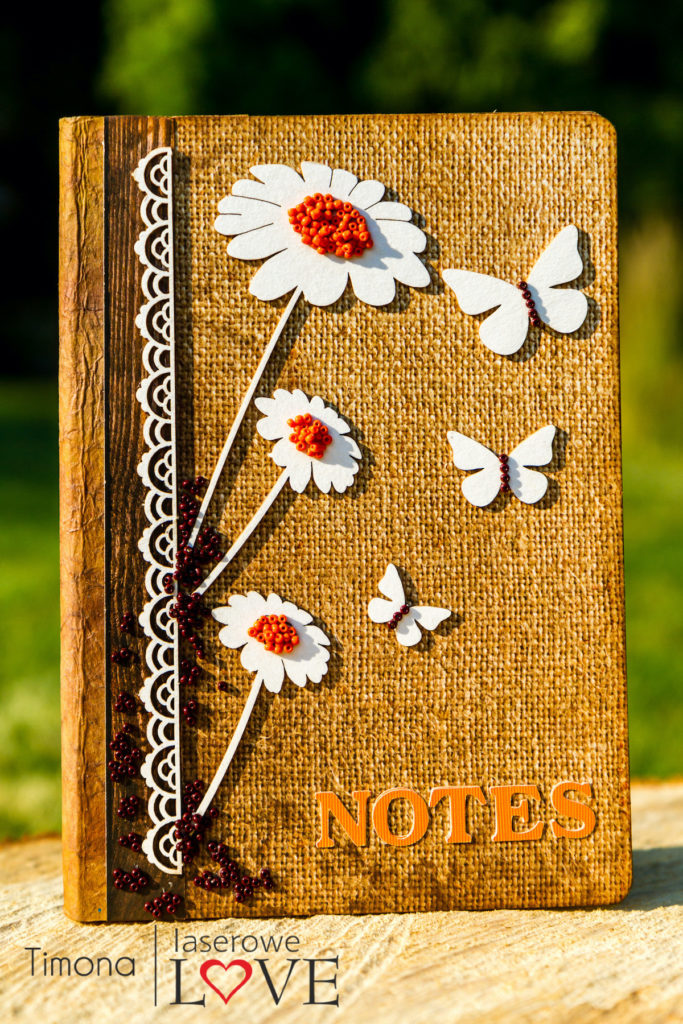 Výrezy z lepenky od Laserowe Love sú skvelým komponentom pre výzdobu nielen kárt/pohľadníc k rôznym príležitostiam, albumov či darčekových krabičiek. Rovnako elegantne sa dajú použiť aj na výzdobu prednej strany (obalu) notesa. Čo poviete :-)?