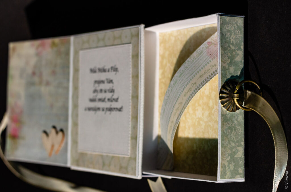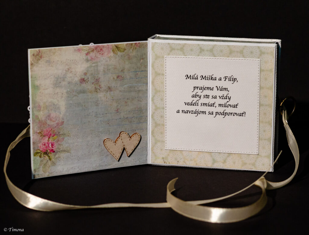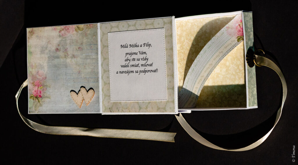 Po rozviazaní mašle sa dá otvoriť svadobné blahoželanie.