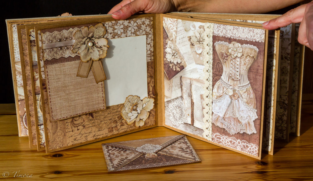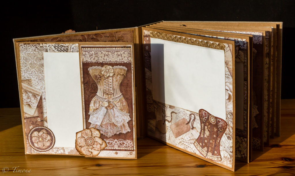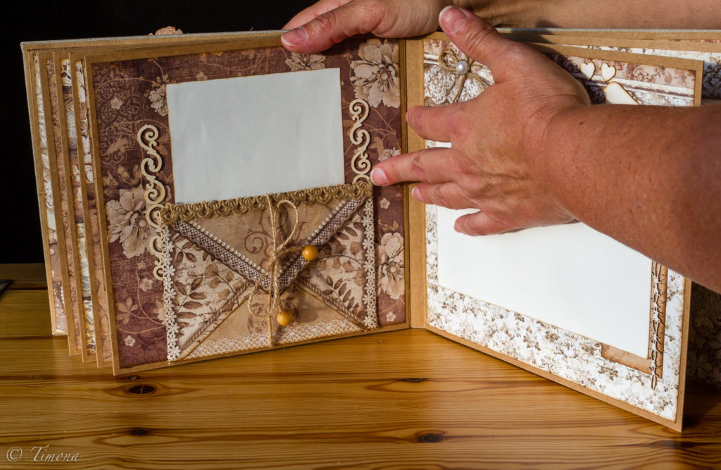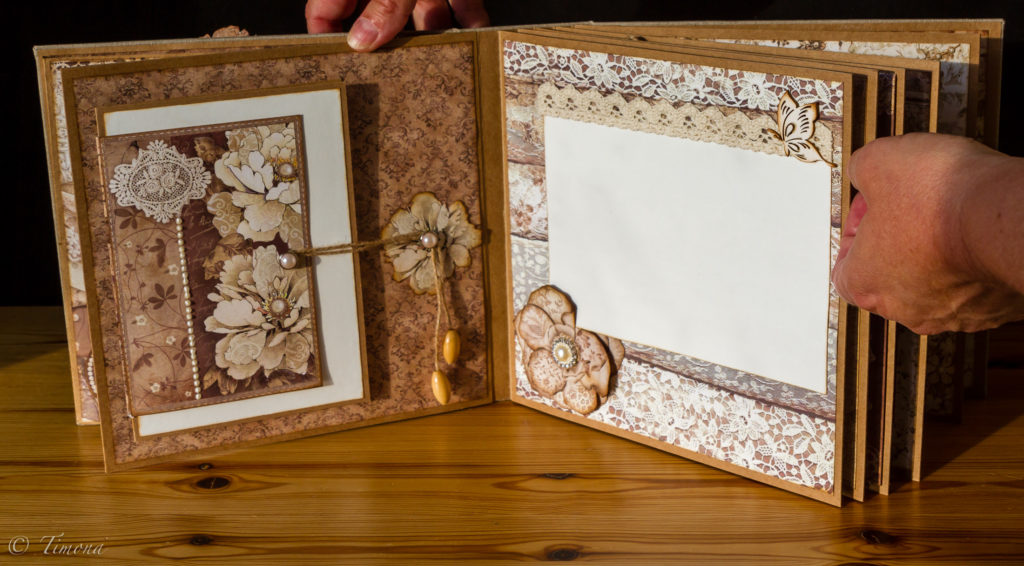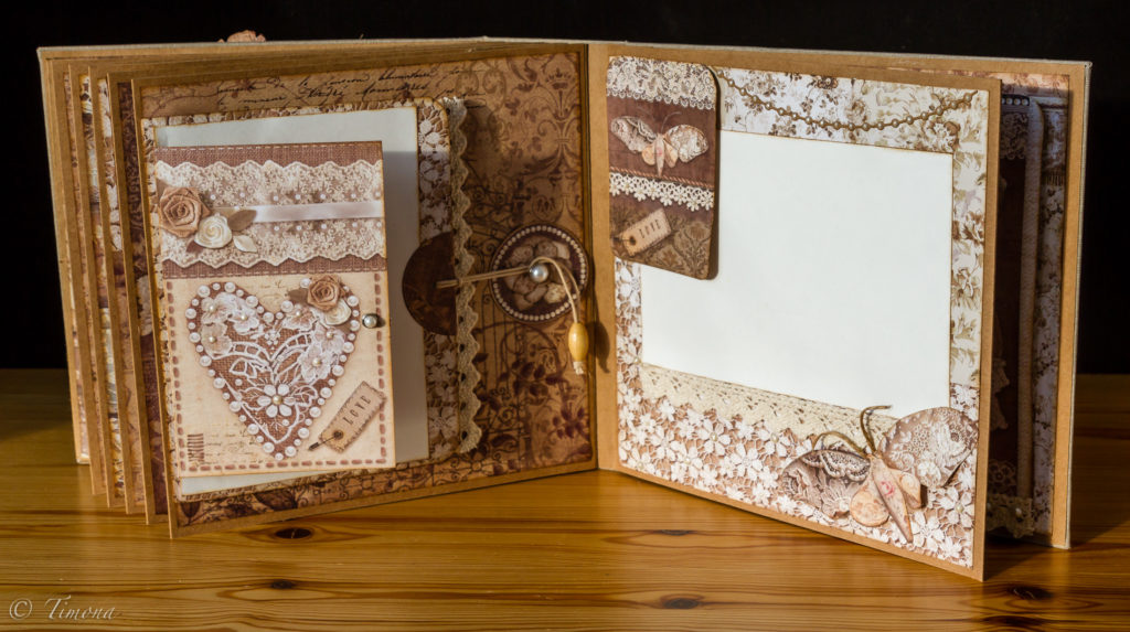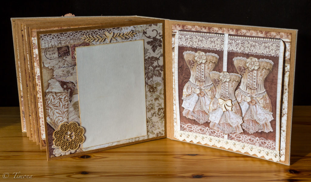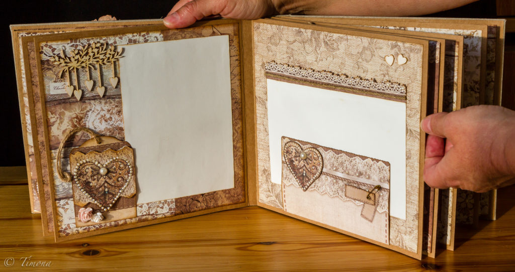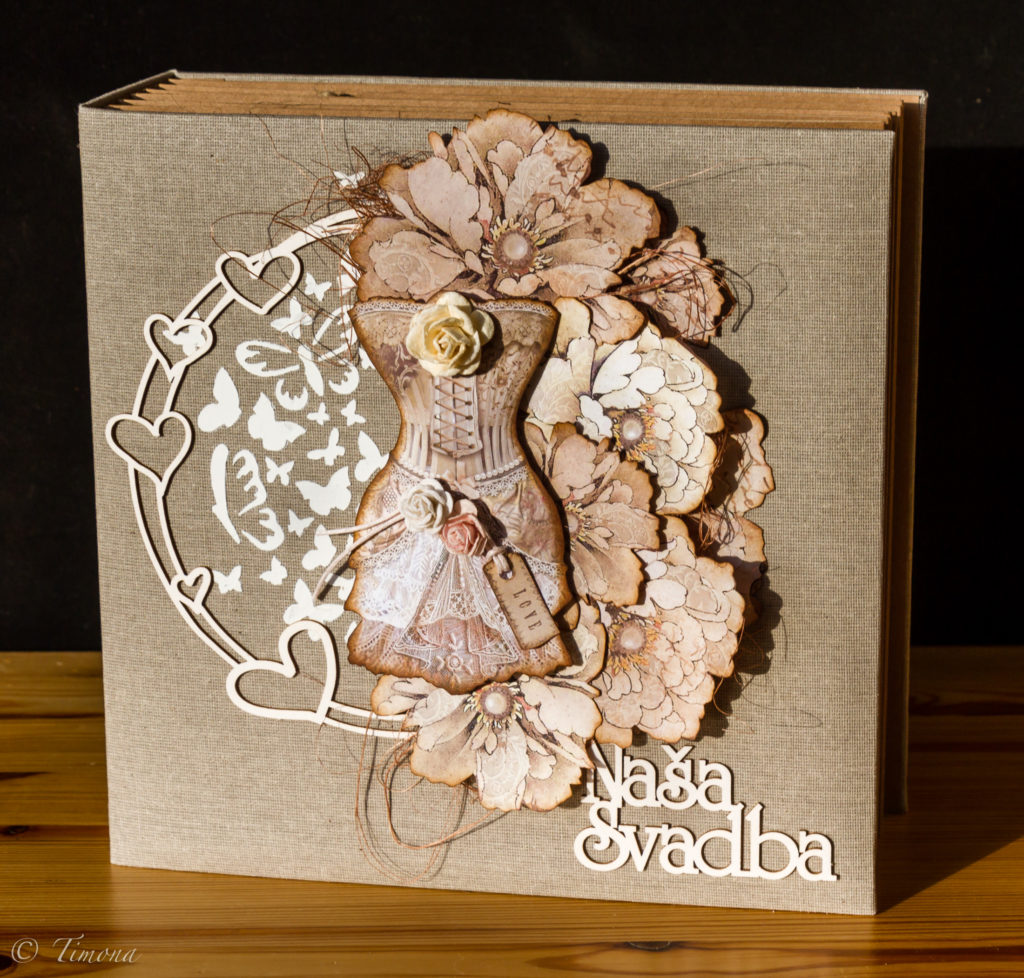 V angličtine Old Lace je nielen výraz pre starú čipku ale pomenúva aj jednu z farieb. Ako pri predchádzajúcich dvoch svadobných albumoch za ostatný čas, aj teraz som siahla po dizajnových papieroch od Stamperia – Old Lace. Skutočne sú na nich, okrem iného, vyobrazené motívy starých čipiek a farebne tiež zodpovedajú názvu.