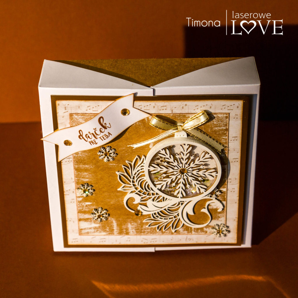 Na zabalenie vianočného darčeka som vyrobila krabičku s vyklápacím vrchnákom. Krabičku som predstavila v príspevku na blogu Laserowe Lowe v rámci skupinovej inšpirácie, kde hlavnou témou bolo využitie chipboardov z dielne tohto výrobcu.